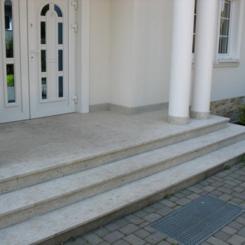 Schody zewnętrzne wykonane z kamienia są całkowicie odporne na warunki atmosferyczne. Możemy zastosować różnego rodzaju kamień taki jak: Granit, kwarcyt, łupek, trawertyn, marmur, piaskowiec, onyks. Umożliwia to dostosowanie koloru i wzoru do wymagań estetycznych całości wystroju. jak elewacja czy barierki.