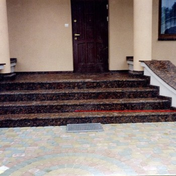 Schody wykonane przy użyciu kamienia naturalnego praktycznie nie ulegają zużyciu. Pasują zarówno do barierki niklowanej jak i szklanej.